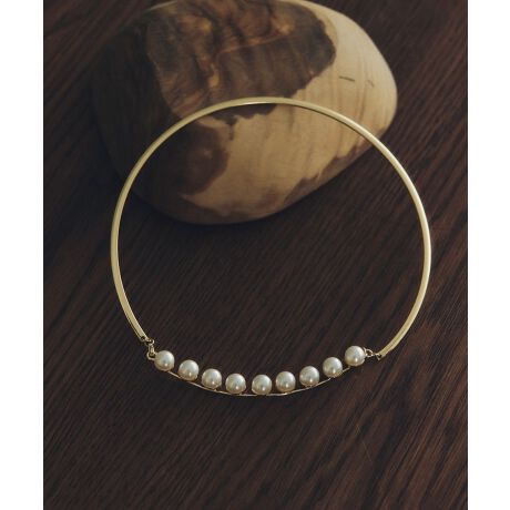 メタルラインに樹脂パールを組み合わせたチョーカーネックレス。