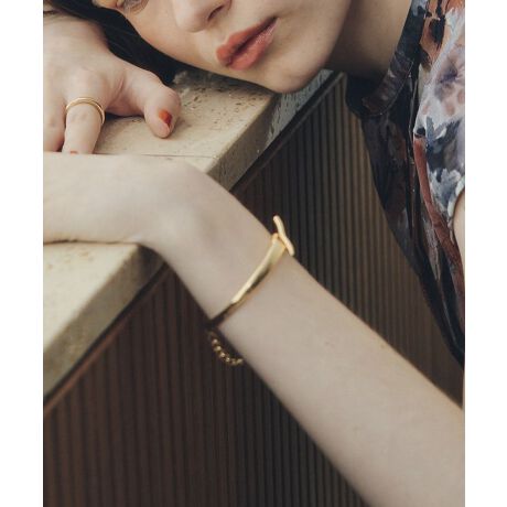 太めの変形メタルバーにチェーンを組み合わせたバングルブレスレット。