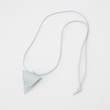 スタイリッシュな三角形デザインと、首にかけられるレザーストラップで、アクセサリー感覚で取り入れられるアイテムです。