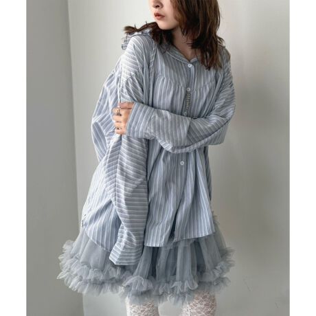 ミニスカートに合わせてコンパクトワンピース風な着こなしもできます!
