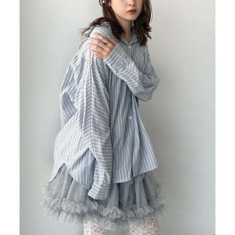 薄手のストライプ生地で仕立てたガーリーブラウス。