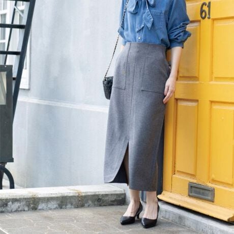 美しいシルエットで人気のダブルポケットデザインタイトスカート