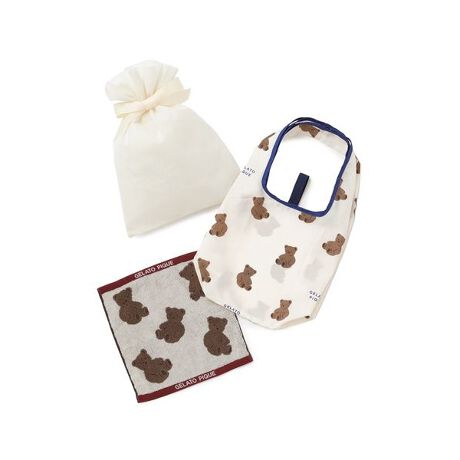<b>【ラッピング済み】ベア柄エコバッグS&ハンドタオルSETをギフト巾着にラッピングしてのお届けになります。(オフィシャルサイト、ウサギオンラインのみショッピングバッグ付き)</b>