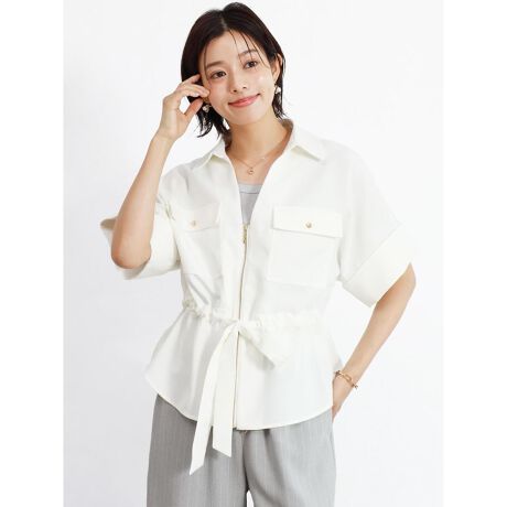 クールな抜け感を演出しつつ、ウエストのギャザーデザインが女性らしいメリハリをプラスします。