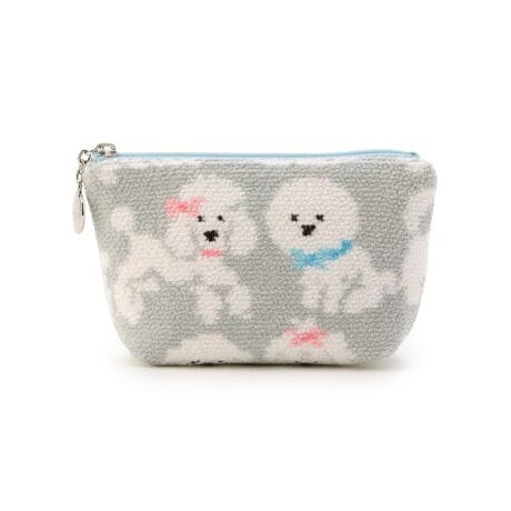 マルチーズやビション・フリーゼ、プードルを描いた『モフモフワンチャン』の舟型ポーチS。真っ白でフワフワのワンちゃんたちがじっとこちらを見つめている、何ともかわいらしい柄です。ピンクやブルーのリボンでおしゃれをしているのも微笑ましいポイント。小ぶりなサイズながらマチがあり、見た目以上の収納力があるのも魅力的です。
