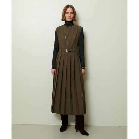 プリーツ使いがポイントのミニマルなワンピース。