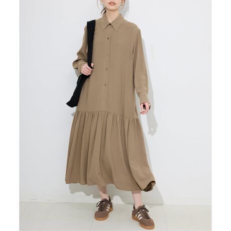 チョークストライプティアードシャツワンピース