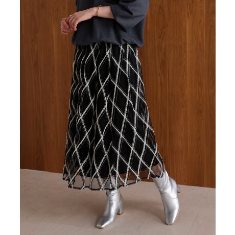軽やかなチュールメッシュに、立体感のあるジャガード刺繍をのせて。透けすぎず、でも軽やか。大人に似合う上品な華やかさを演出してくれる素材です。日常を少しだけ特別にしてくれる、大人のためのご褒美スカートです。