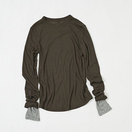 少し長めの袖は、たゆませたりアウターの袖から覗かせたりすることもできてスタイリングの幅が広がります。