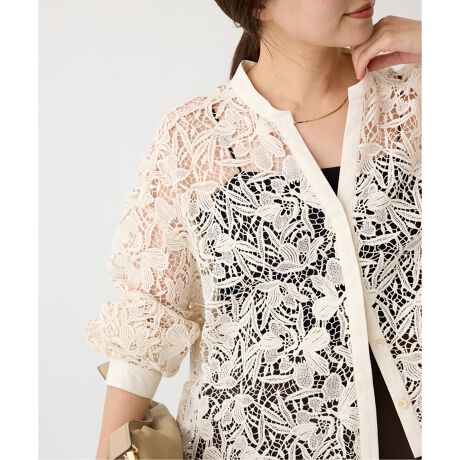 洗練された上品なフラワーモチーフが華やかなレースシャツ。