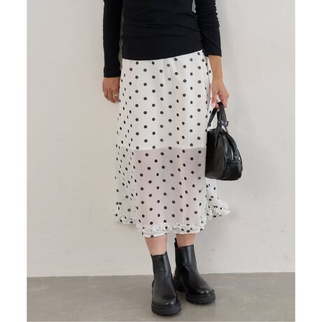 ドットプリントシアーロングスカート