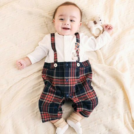 【お揃い】チェックサロペットドッキングロンパースベビー(70~80cm)