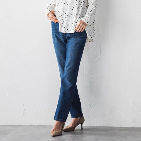 ぐーんと伸びてやさしくフィットする、高伸縮性のデニム素材を使用。