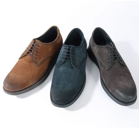 クセのないプレーンダービーシューズに、素材と加工で雰囲気よく仕上げたウォータープルーフモデル。
