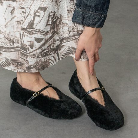 Fabio Rusconi◆0.8cmヒール◆ラウンドトウストラップムートンバレエ
