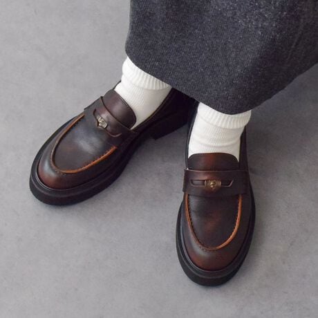軽量なEVAソールを採用した厚底ペニーローファーは、シンプルなデザインでデイリーに活躍してくれる一足。