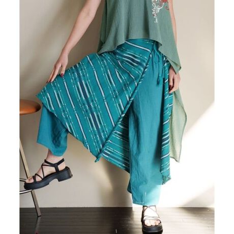 [型番:IMC-5213-2025]南インドのジャカード生地を使用したパンツ。ワイドシルエットで、トップスを更に引き立たせる一着。肌触りの良い素材感と、風通しの良いざっくりとした織り生地は、素朴で愛着沸く一枚。