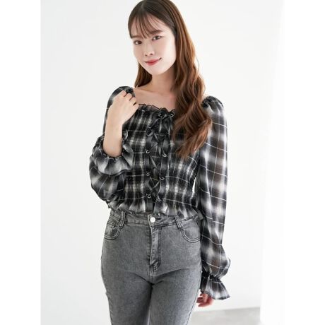 レースアップデザインがフェミニンな甘さをプラスしてくれるトップス