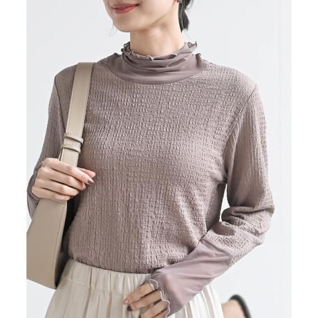 襟元と手元をシアー素材で切り替えて抜け感を出したカットソー。