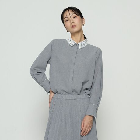 トップグレーのシャツには白レース襟、ネイビーのシャツにはクロレース襟の配色にしています。