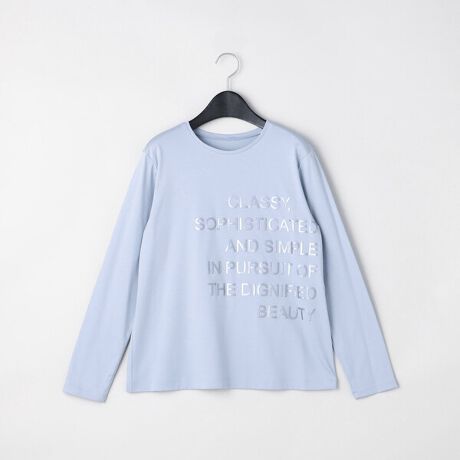英文のコムサのパーパスをメタリックなプリントで表現しています。