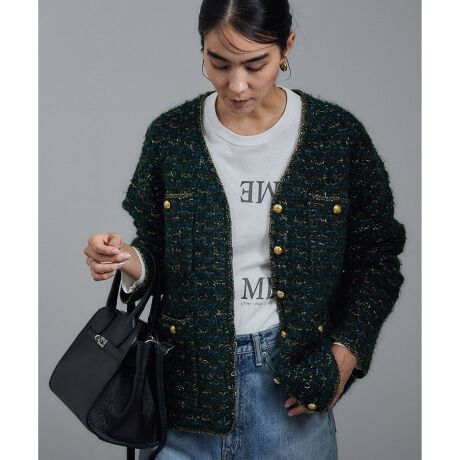 ツイードニットVネックジャケット