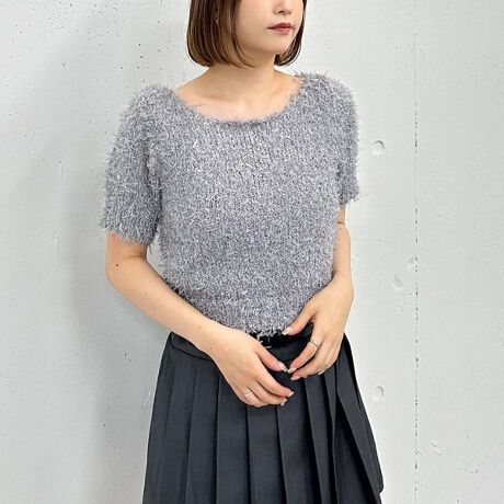異なる糸で編み立てた、ふわふわ感が可愛いハーフスリーブニット。