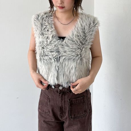 ボリュームはありますが首元がVネックで大きく開いているのでスッキリと見せてくれます。