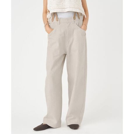 ナチュラルな表情のリネン混素材を使用したワイドスラックス。