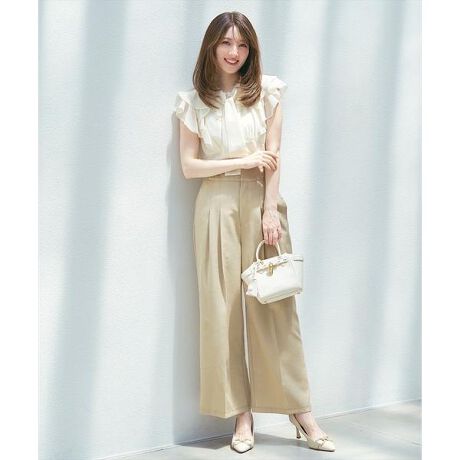 【さらっと涼しい麻調素材で、夏も快適に美シルエットをキープする優秀ワイドパンツ】【Point】・微光沢の麻調合繊が、きれいめな印象を残したまま夏らしく涼しげに映えるワイドパンツ。・計算されたウエストタック&ダーツが立体感のあるシルエットを生み出し、気になる腰回りを自然にカバーしてくれます。・落ち感のあるストレートワイドラインで、スタイルアップ効果も抜群。・シンプルながらも計算されたディテールで、きちんと感とリラックス感を両立した大人の一本です。・ご自宅でのお手入れ可能な、イージーケアなところも嬉しいポイントです♪・サイドポケットあり(後ろポケットはフェイク仕様)ケア方法:手洗い可能透け感:なし裏地:あり伸縮性:なし(ウエスト部分:後ろゴムあり)光沢感:微光沢生地の厚さ:薄手