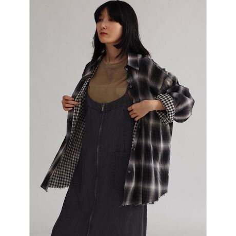 表と裏で柄が異なるチェック柄のダブルガーゼ生地を使用した、こなれ感たっぷりのオーバーサイズシャツ。
