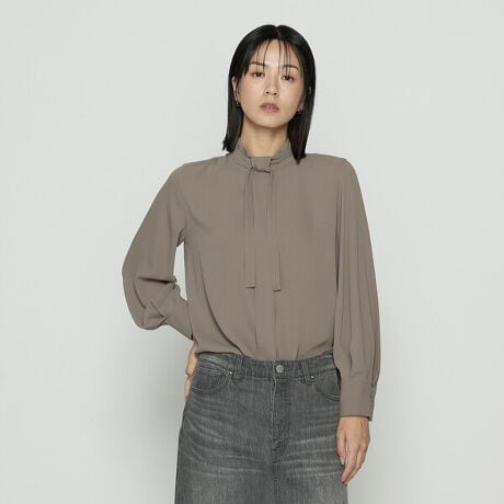シンプルなハイネックとエレガントなタイスタイルの両方が楽しめるタイ付きハイネックブラウスです。