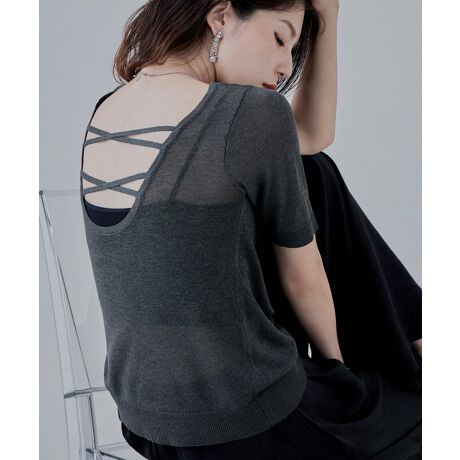 etoll. エトル 後ろ姿が主役になるバッククロスが連なったデザイン性のあるシアーニット。