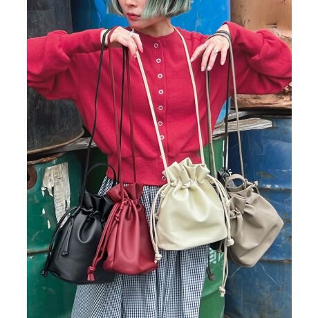 使いやすい小ぶりのサイズ感とぎゅっと絞ったコロンとしたシルエットが可愛い巾着バッグ。