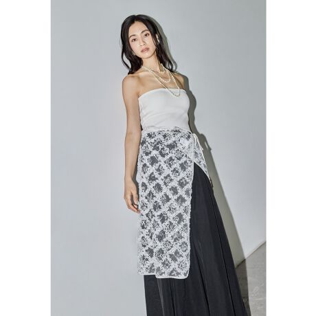 メタリックのスパンコールとパールビーズをランダムに刺繍したチュールデザインと