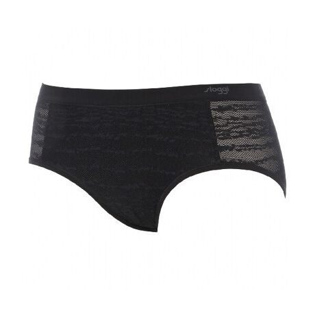 幾何学模様のボーダーレースを使用したモダンなはきこみ浅め、軽い着けごこちのヒップスタースタイルです。