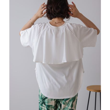 シンプル&華やか!フリルデザインTシャツ。シンプルなフロントデザインに、後ろのフリルがアクセントになった一枚。さらっとした綿素材で、これからの季節にぴったりの軽やかな着心地。ラウンド裾で後ろが少し長めになっているので、リラックスしたスタイルにもぴったりです。シンプルな中にも華やかさを感じる、女性らしいTシャツです。