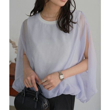 繊細な透け感が魅力のオーガンジーケープ風ブラウス。