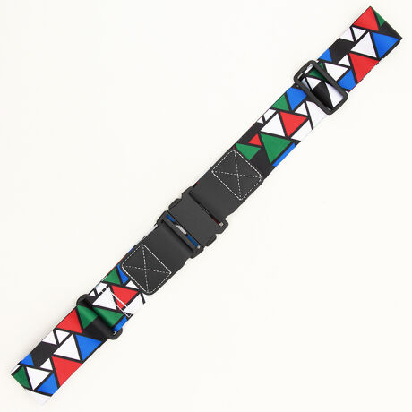 飛行機で預けた荷物、みんな同じような色や形で自分の荷物がわかりにくいこと、ありませんか?"スーツケースは仕事にも使うし家族共用なのであまり派手な色は選べない"、"万が一、預けている間に気圧の変化等で開いてしまったらどうしよう"。そんな時は、色柄バリエーション豊富なスーツケースベルトがおすすめです。目印としてはもちろん、鍵の故障等でスーツケースが開いてしまったときの荷物の飛び出しを防いだり、防犯効果も期待できます。日本メーカーニフコの超薄型ワンタッチバックルを使用。着脱簡単でスーツケースに合わせて長さ調節が可能です。