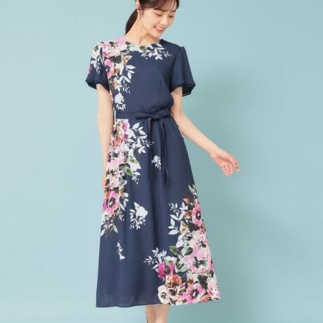グログランリボン付きなので、ストンとしたAラインシルエットとウエストをマークしたエレガントなシルエット、2wayで楽しんでいただけます。