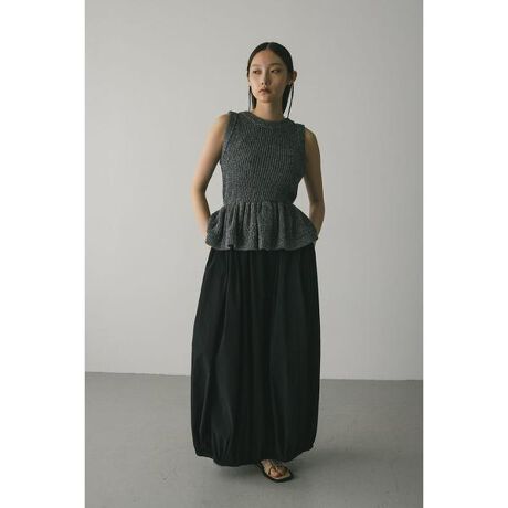 [型番:500IAS70-1641]モデル身長163cm(FREEサイズ着用)ドライなコットンリネンのミドルゲージで編み立てたペプラムシルエットが映えるニットタンク。すっきりとしたラウンドネックとミドルゲージの編地がスタイリングにこなれ感をプラス。カジュアルにもフェミニンにも着用いただけます。ストレッチあり、透け感なし。【お手入れ方法】ドライクリーニング
