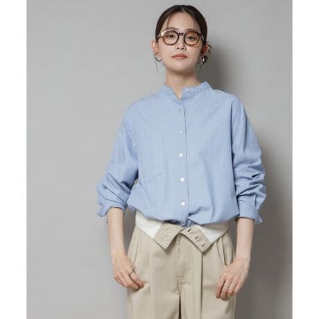バンドカラーとストライプ柄のさりげないデザインが、こなれた雰囲気のシャツ。単品使いでトップスとしての着こなしはもちろん、ニットや、スウェット、ジャケットなどのインナーにも着回しやすく、ON/OFFで活躍するアイテムです。