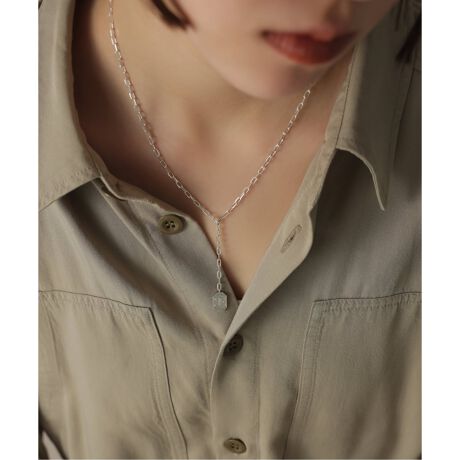 八角形パーツが目をひく、Y字ネックレス。