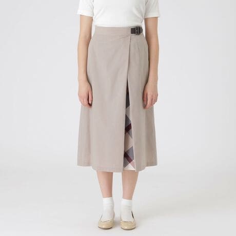 マチから覗くクレストブリッジチェックがポイントのスカートです。