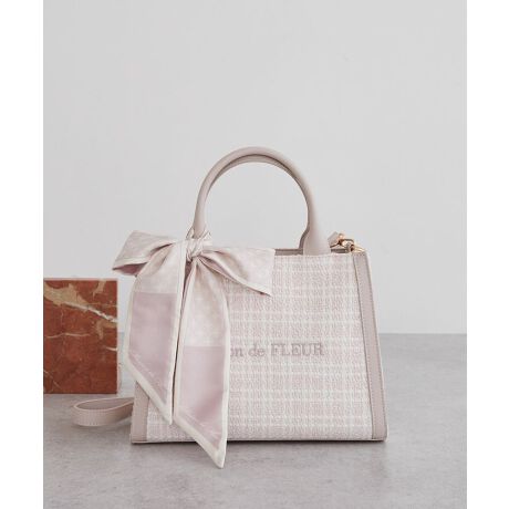 上品なツイード素材にオリジナルのスカーフがアクセントになった2Wayトートバッグ。