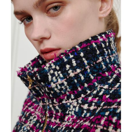 ショートブルゾンなので、脚長に見せてくれ、ツイードアイテムでもカジュアルダウンしてお召しいただけます。