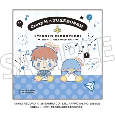 大人気『ヒプノシスマイク SANRIO NAKAYOKU EDIT』のイラストをデザインに使用したハンドタオルです。刺繍のワンポイント入り。