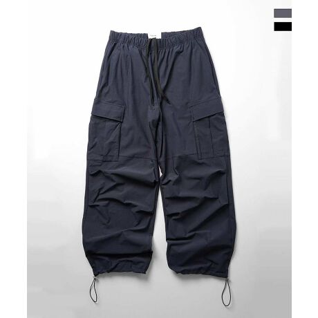 Confirm ビッグポケット 裾ドロスト ワイドシルエット ポリメッシュカーゴパンツ