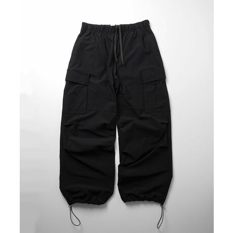 Confirm ビッグポケット 裾ドロスト ワイドシルエット ポリメッシュカーゴパンツ