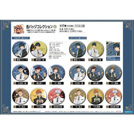 ※1BOX未開封の状態でご購入いただいた場合は、フルカラー缶バッジ全8種+グリッター缶バッジ全8種の中からランダムで1種の計9個の缶バッジが入っています。